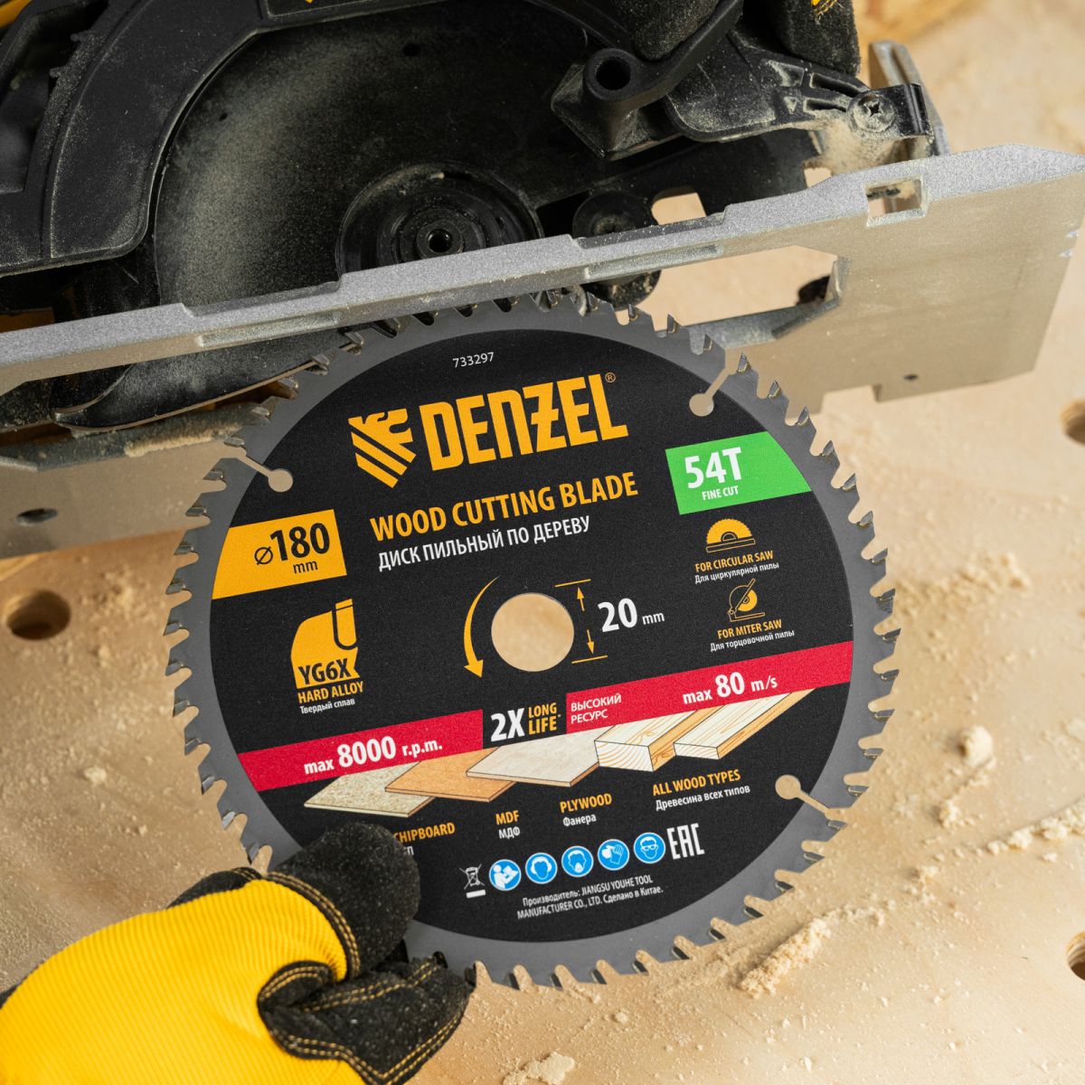Пильный диск по дереву ф180 х 20 мм, 54зубьев Denzel