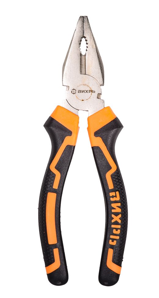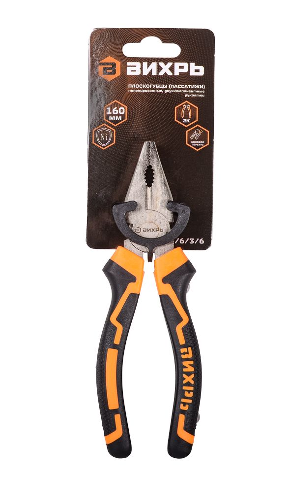 Плоскогубцы (пассатижи), 160мм., никелированные, двухкомпонентные рукоятки, Вихрь