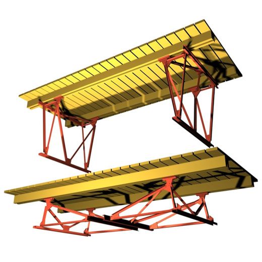 Конструкция комплекта подмостей каменщика состоит из двух металлических оснований (ног) и цельного деревянного настила.