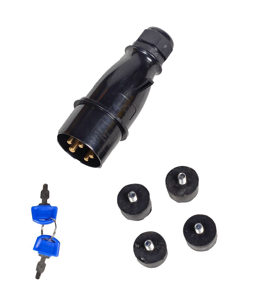 Паспорт изделия, Силовая вилка 32 А (для моделей с розеткой 32 А), Свечной ключ, Вороток либо отвёртка (в зависимости от модели), Провода и детали лотка аккумуляторной батареи, Комплект резиновых опор с гайками, Ключ электростартера