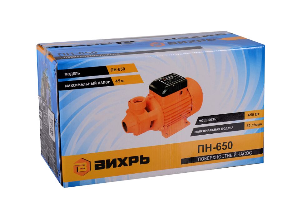 вихревой, 650 Вт, высота подъема – 45 м, 55 л/мин, корпус насоса – чугун