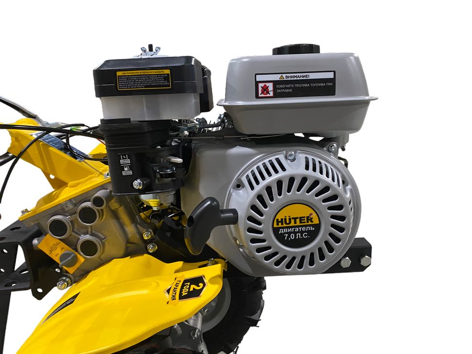7 л.с., четырехтактный, бензин, бак – 3.6 л, ширина – 100 см, 70 кг
