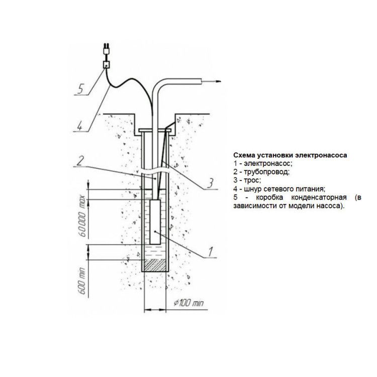 1. Электронасос с конденсаторной коробкой* и шнуром питания – 1шт