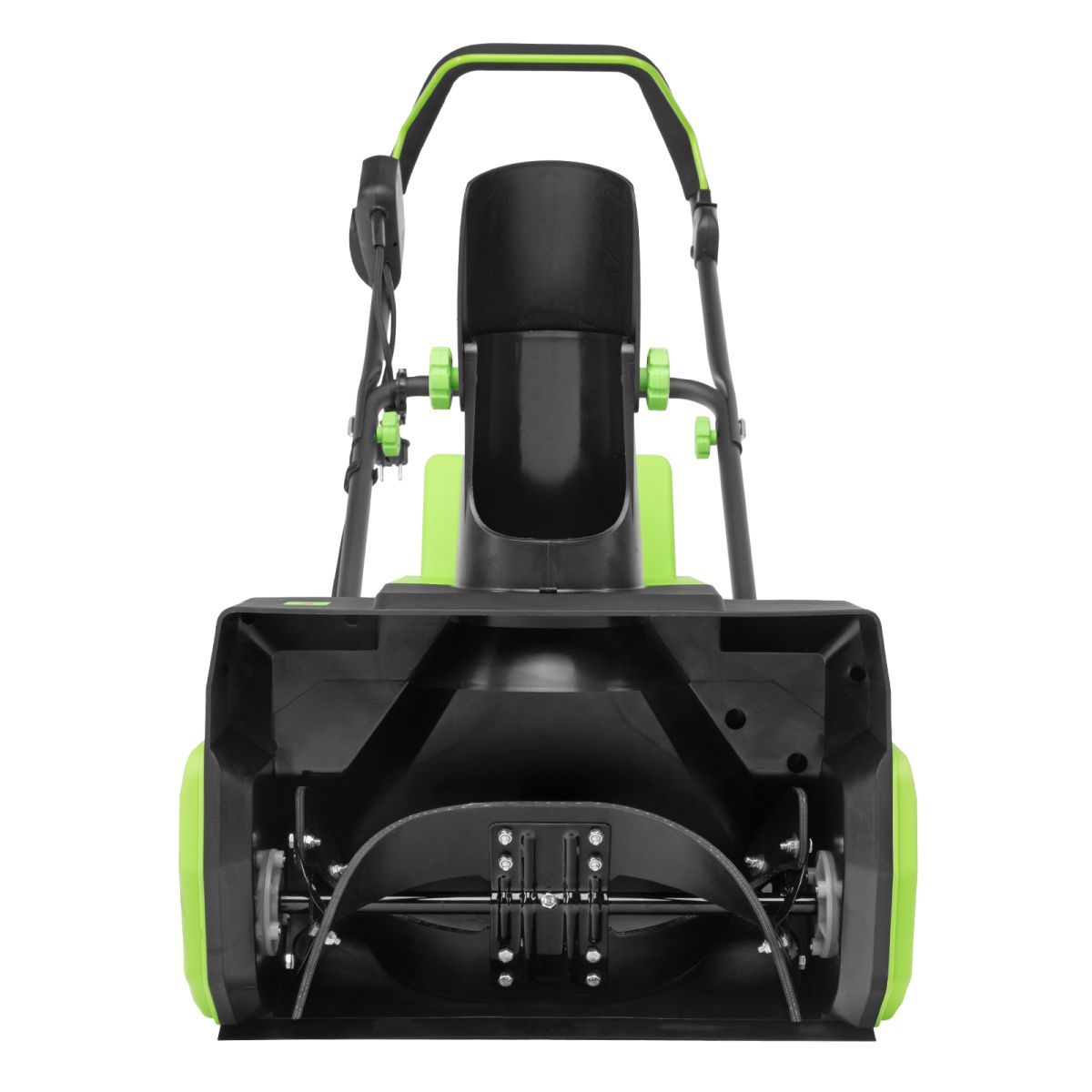 - Удобное хранение и транспортировка — благодаря складной рукоятке снегоуборщик не занимает много места.