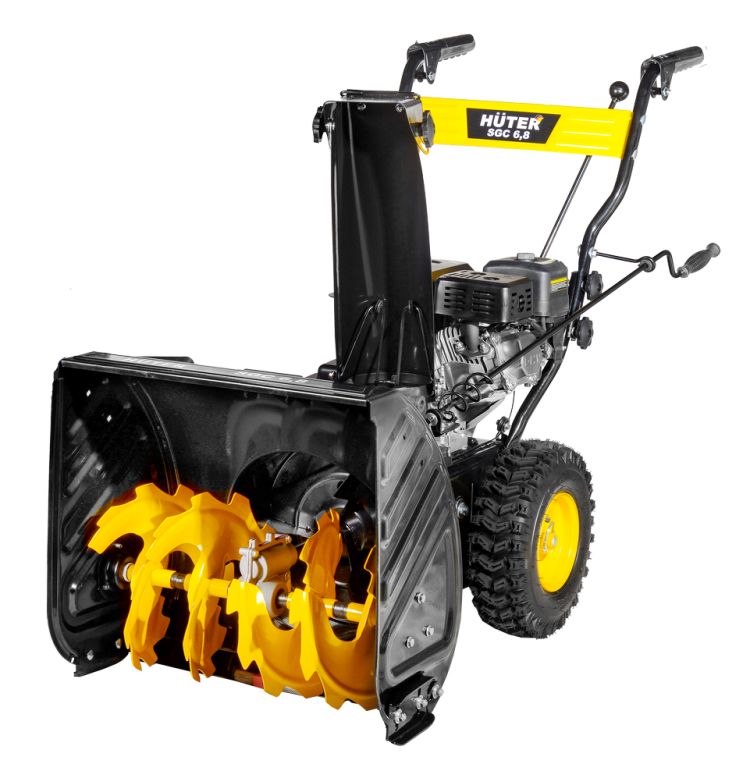 Снегоуборщик Huter SGC 6,8 имеет 5 скоростей работы вперёд и 2 назад, за один проход способен очистить 56 см осадков высотой 54 см. Хорошо измельчает плотный снег и не скользит при гололеде благодаря протекторам на шинах. Специальный рычаг позволяет регулировать направление выброса снега прямо в процессе работы. Четырехтактный бензиновый двигатель имеет систему воздушного охлаждения, исключающую перегрев.