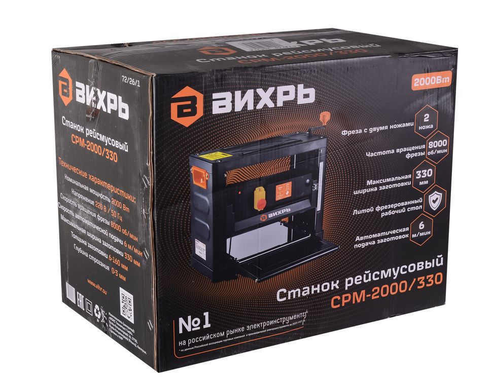 2000 Вт, 8000 об/мин, толщина заготовки 6-160 мм, ширина: до 330 мм