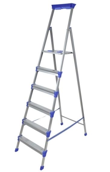 Стремянка стальная 6 ступеней (1,29м), с лотком для инструментов