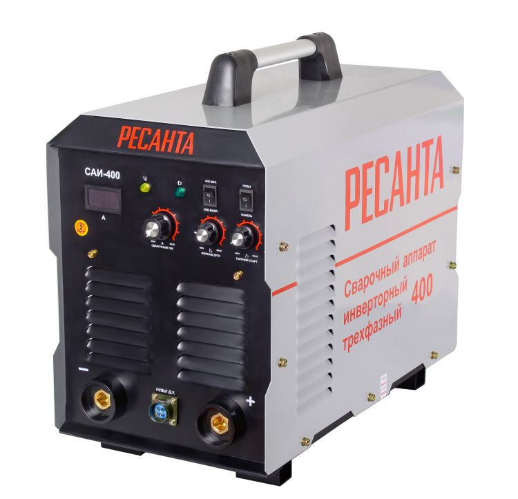 Сварочный аппарат Ресанта САИ-400 – инверторный источник питания постоянного тока, разработанный для ручной электродуговой сварки, методом ММА, плавящимся покрытым электродом. Прибор адаптирован под эксплуатирование в сетях с перепадами в диапазоне 380 (±15%) В. Этого вполне достаточно, чтобы обеспечить стабильную работу инвертора Ресанта САИ 400, в любом режиме нагрузки.