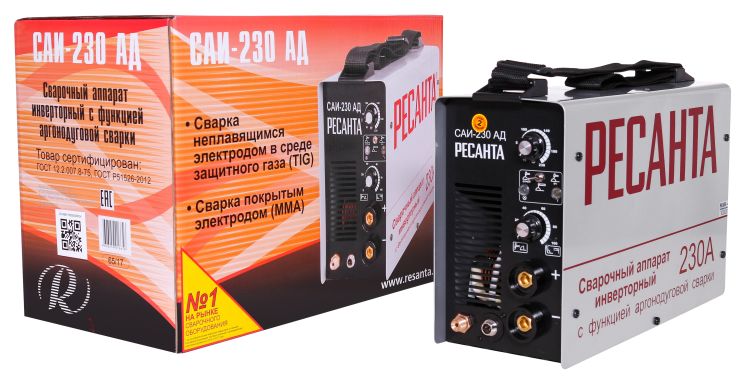 Сварочный аппарат РЕСАНТА САИ АД – современный портативный однофазный инверторный сварочный аппарат с функцией аргонодуговой сварки постоянным током
