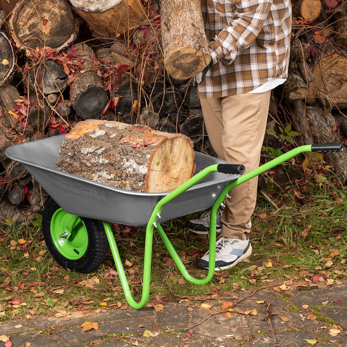 - Мобильность —благодаря небольшому весу 7 кг и колесу на двух шариковых подшипниках даже нагруженную тачку легко перемещать.