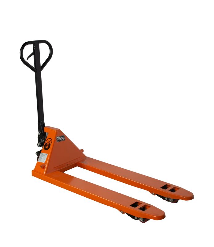 Тележка гидравлическая TOR JC грузоподъемностью 2000кг с вилами 1150мм и полиуретановыми колесами. Грузоподъемность тележек TOR JC - 2т. соответствует максимальной разрешенной грузоподъемности стандартной европаллеты, что дает возможность транспортировать большинство видов грузов. Полиуретановые колеса хорошо поглощают вибрации и ударные нагрузки, не повреждают пол, чрезвычайно устойчивы к порезам и их разрастанию, долговечны в использовании. Могут использоваться в помещениях с грязными полами, не боятся осколков, воздействия масла, бензина и слабых кислот. TOR JC – оптимальный выбор для складов со средней интенсивностью работ. Преимущества TOR JC: - Надежный сварной гидроузел с хромированным штоком - Защитное порошковое покрытие устойчивое к сколам и коррозии продляет срок службы оборудования - Легкий вес (60 кг) облегчает процесс управления и снижает утомляемость работников - Сварные соединения и усиленные наконечники вил для большей прочности конструкции - Сдвоенное поворотное колесо обеспечивает высокую маневренность - Доступная цена при сохранении высокого качества - Возможна комплектация полиуретановыми или резиновыми колесами