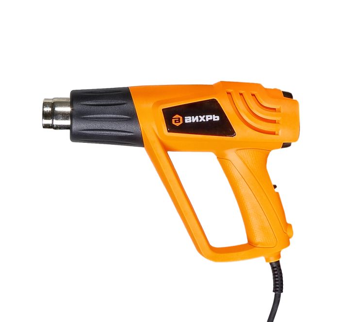 Термопистолет (фен промышленный) ВИХРЬ ТП-2000 – ручной электроинструмент для обработки горячим воздухом поверхностей и материалов, для удаления красок, формования и сварки пластмассы, нагревания термоусадочных труб; инструмент также подходит для пайки и лужения, размягчения клеевых соединений (швов), а также размораживания водопроводных труб.
