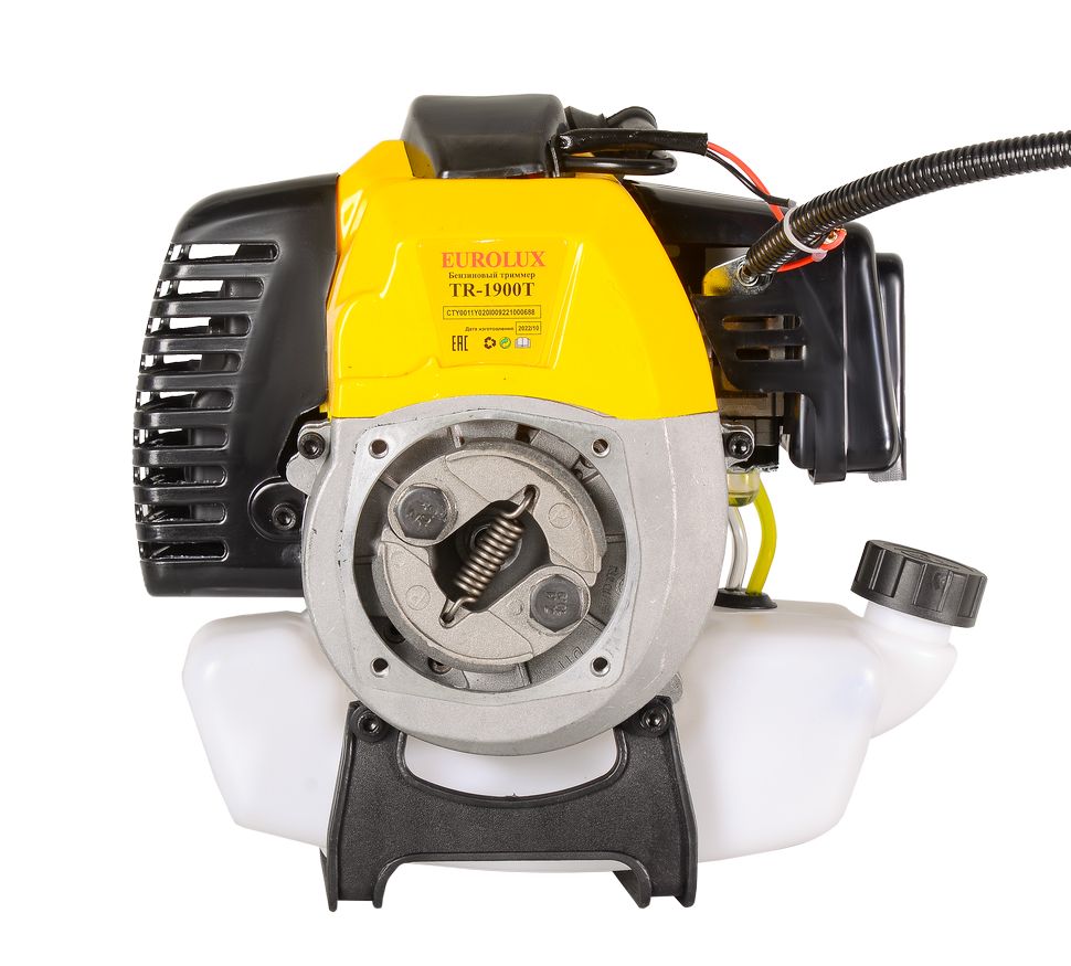 Паспорт изделия, Двигатель в сборе, Штанга в сборе с редуктором, Защитный кожух, Режущий диск, Катушка с леской, Рукоятки управления (левая и правая), Наплечный ремень, Комплект ключей