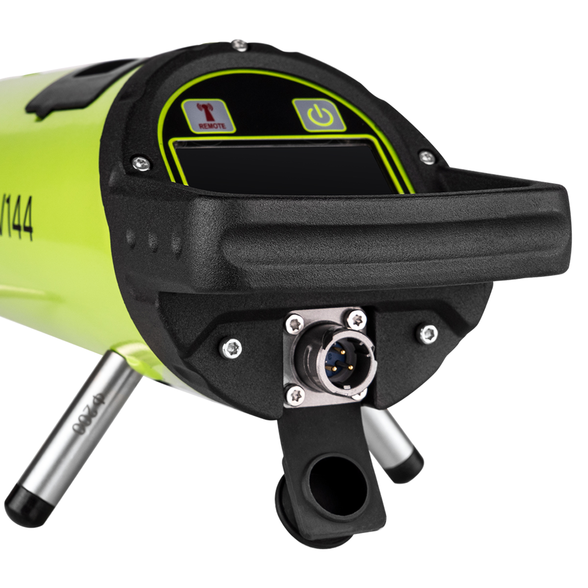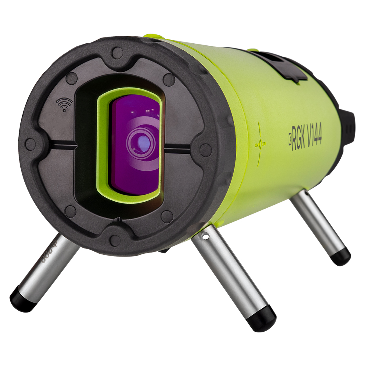 Изделие выполнено в корпусе круглого сечения диаметром 92 мм, благодаря чему помещается в стандартные трубы, начиная с 4-дюймового типоразмера. 5 наборов сменных регулировочных ножек обеспечивает размещение проецирующего прибора с самоцентрированием в трубопроводах типовых диаметров до DN 300. Симметричное размещение опорных точек позволяет устанавливать трубный лазер RGK V144 на любых выпуклых поверхностях, например, продольно, сверху крупноразмерных труб. При выполнении работ в тоннелях, штреках, каналах и т.п. предусмотрена возможность размещения изделия на штативе.