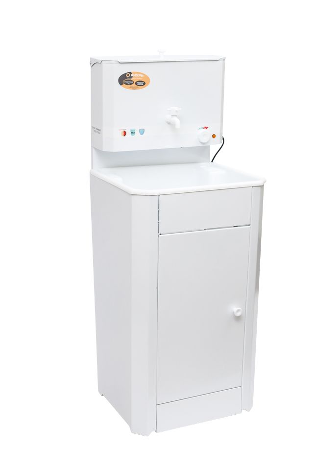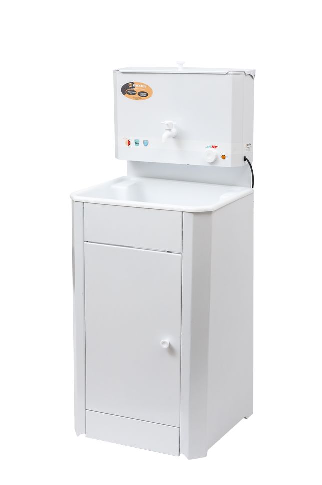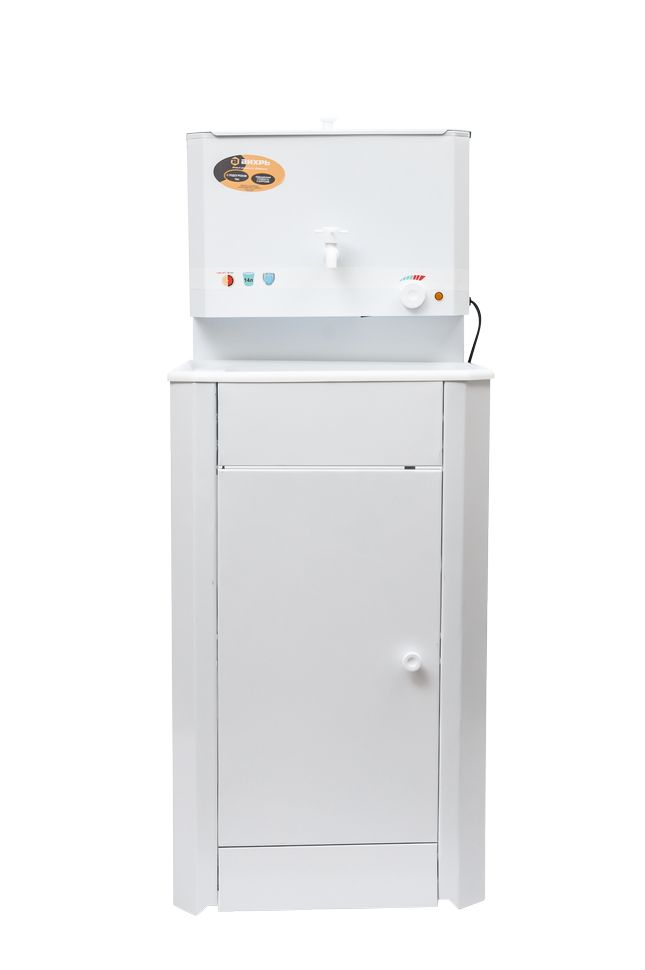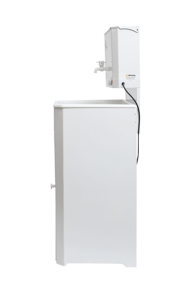 Умывальник с подогревом, белого цвета, с тумбой и пластиковой мойкой, от российского производителя ВИХРЬ.