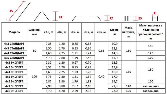 Максимальная нагрузка в положении "стремянка" – 150 кг