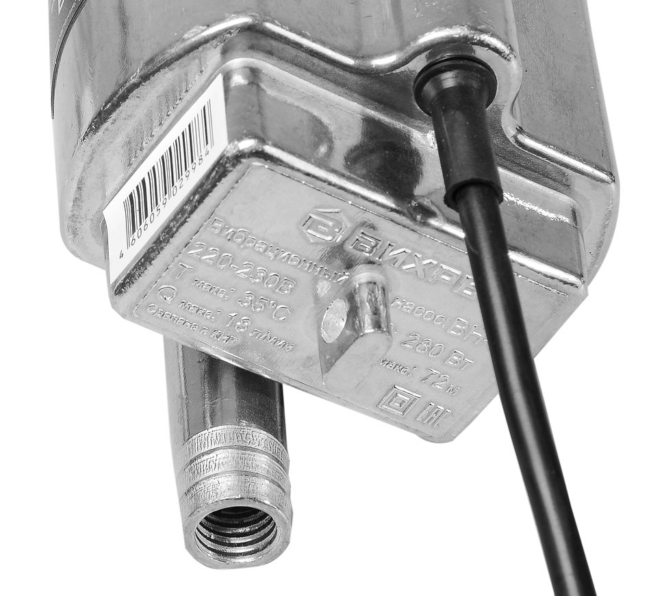 280 Вт, высота подъема воды – 72 м, 18 л/мин, погружение до 3 м, 3/4", термозащита, кабель – 25 м, нижний забор воды