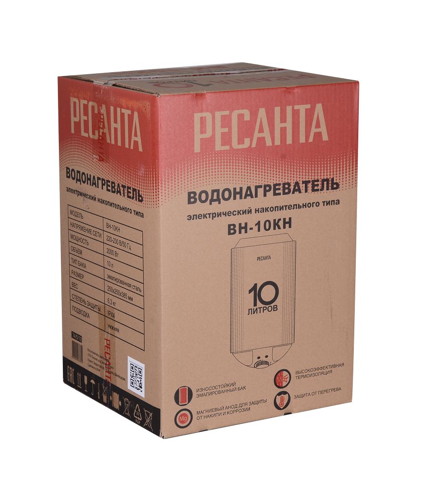 вертикальная установка, бак - эмалированная сталь, 10 л, 2 кВт, время нагрева - 16 мин, до 75°C, 6.3 кг