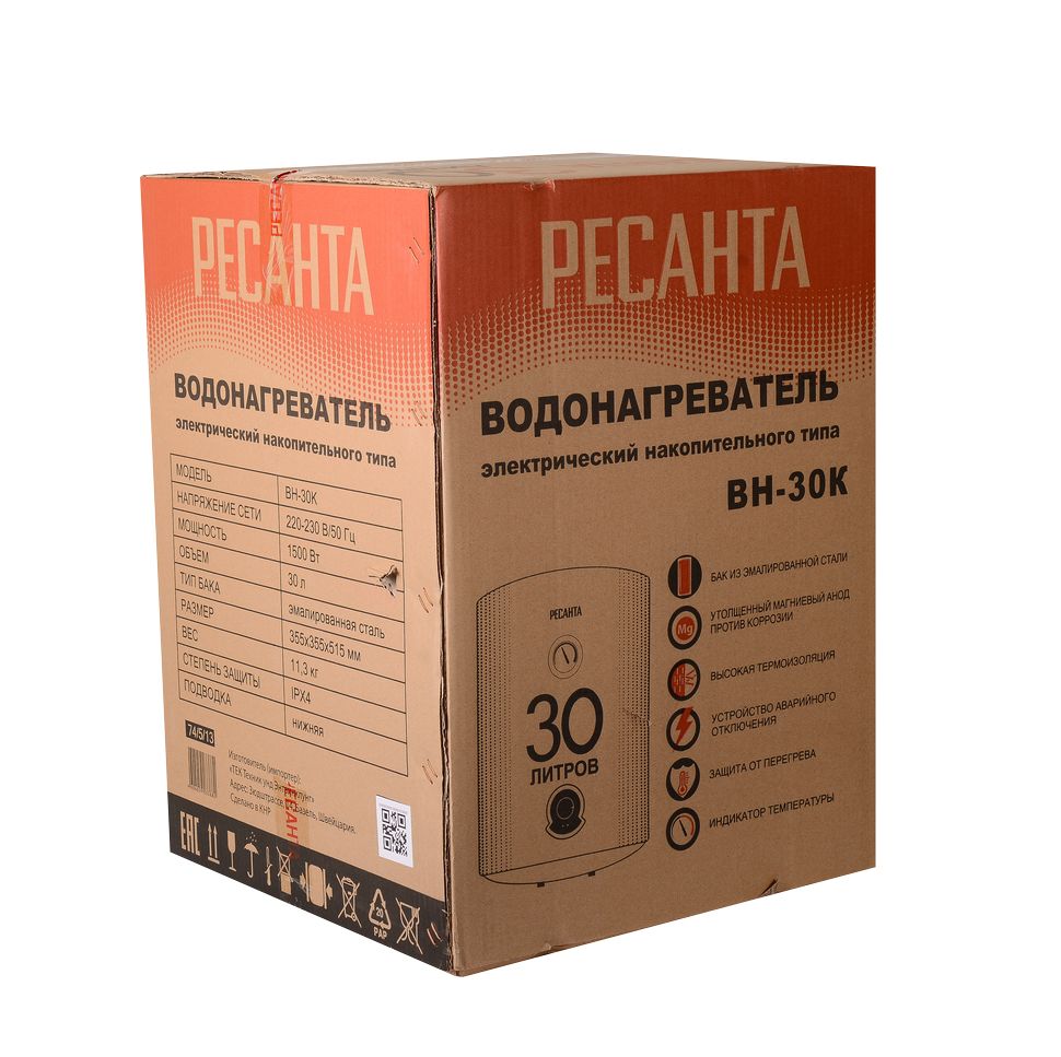 вертикальная установка, бак - эмалированная сталь, 30 л, 1.5 кВт, время нагрева - 65 мин, до 75°C, 11.3 кг