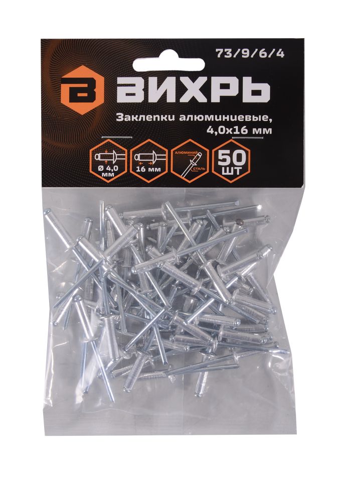 Заклёпки алюминиевые Вихрь 4,0х16 мм, 50 шт.