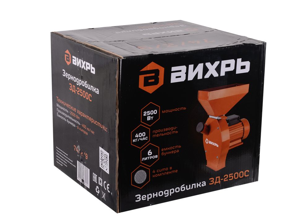 Зернодробилка с асинхронным двигателем ЗД-2500С Вихрь